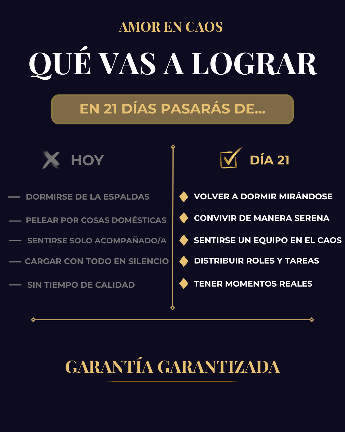 Si todavía están juntos y en el fondo quieren seguir estándolo, no es demasiado grave. Amor en Caos fue creado para parejas que sienten que llegaron al límite — porque ese es exactamente el punto donde el método funciona mejor. Si ya están pensando en separarse pero no quieren hacerlo, este es el momento de empezar.